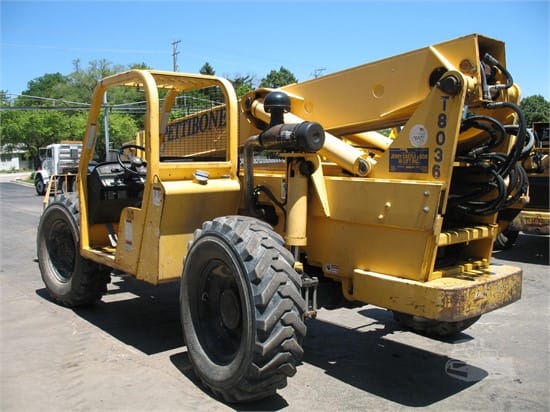 Includes foam-filled tires, auxiliary hydraulics, side-tilt carriage, 8,000 lbs. capacity, 36 ft. lift height, 48 in. fork frame, and single joystick operation. Please call for sale and rental pricing.